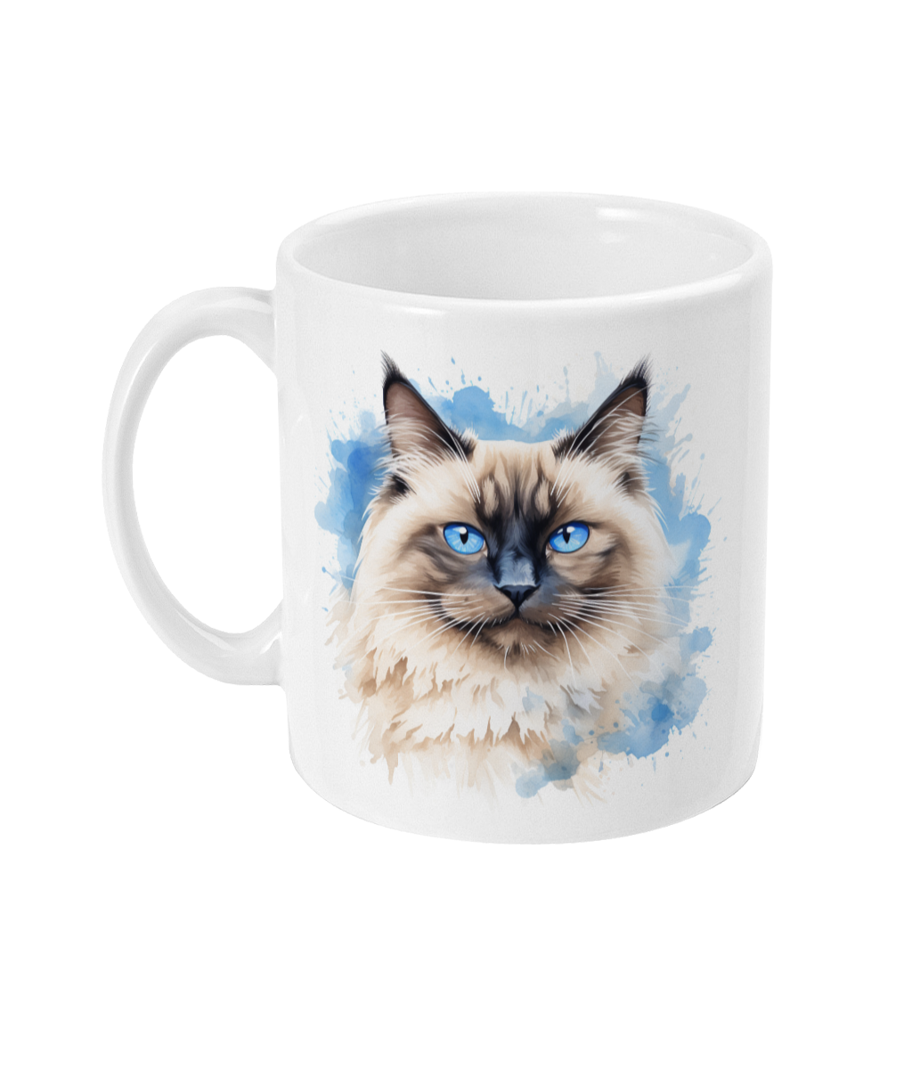 Embrace the allure of our Himalayan Bliss Ceramic Mug, depicting a majestic Himalayan cat with captivating blue eyes amidst a tranquil watercolor backdrop. This premium ceramic mug is a delightful daily companion, ideal for cat lovers and art enthusiasts alike. Whether for yourself or as a thoughtful gift, elevate any drink with a touch of feline grace and sophistication.
