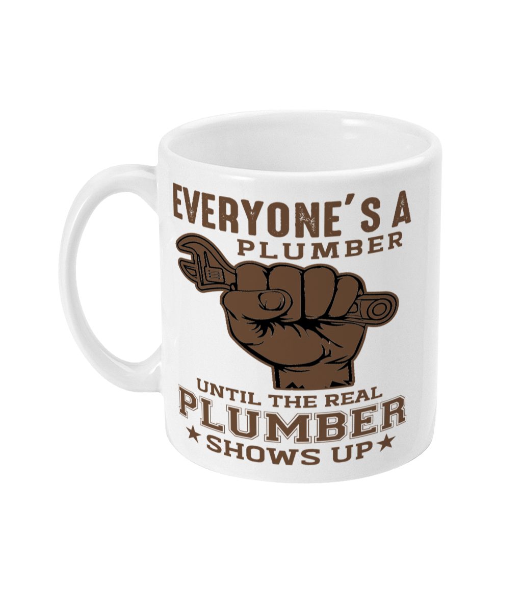 Embrace the comedic truth with our ‘Everyone’s A Plumber Until The Real Plumber Shows Up’ Mug. Crafted from glossy ceramic, this white mug features a striking design of a fist gripping a pipe wrench alongside the witty phrase that captures the essence of amateur vs. professional plumbing. Perfect for the plumber in your life, this mug serves as a daily reminder of the expertise and skill true plumbing professionals bring to every job.