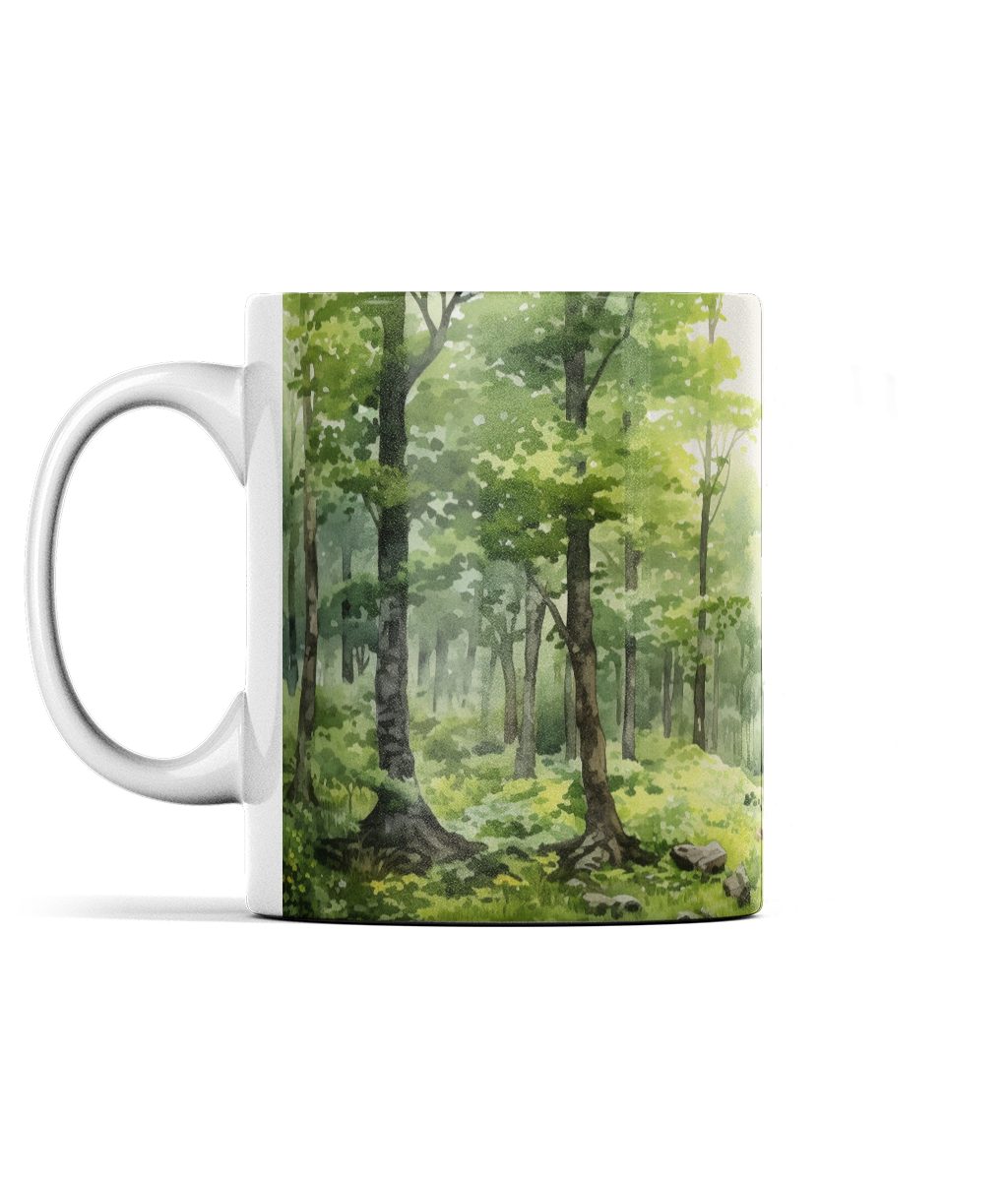 Indulge in the serenity of nature with our Enchanted Forest Walk Mug. This ceramic mug features a captivating watercolour design of a lush forest complete with vibrant greenery and dappled sunlight. An ideal gift for nature lovers, art enthusiasts, or anyone seeking a moment of peace in their daily routine.