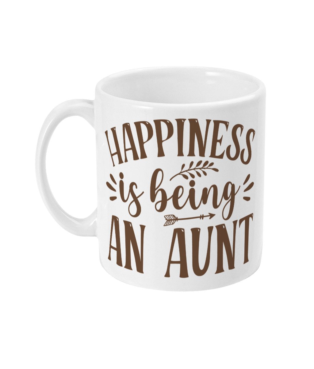Indulge in the aunt-hood charm with our exquisite ‘Happiness is Being an Aunt’ Mug. This white ceramic mug, embellished with earthy brown ‘HAPPINESS is being AN AUNT’ text and decorative leaves and arrows, is a heartfelt ode to the joy aunts bring. Perfect for those who cherish the bond of love, warmth, and mischief shared with nieces and nephews. Whether you gift it to your amazing aunt or treat yourself, this mug is a daily reminder of the unique happiness found in being an aunt.