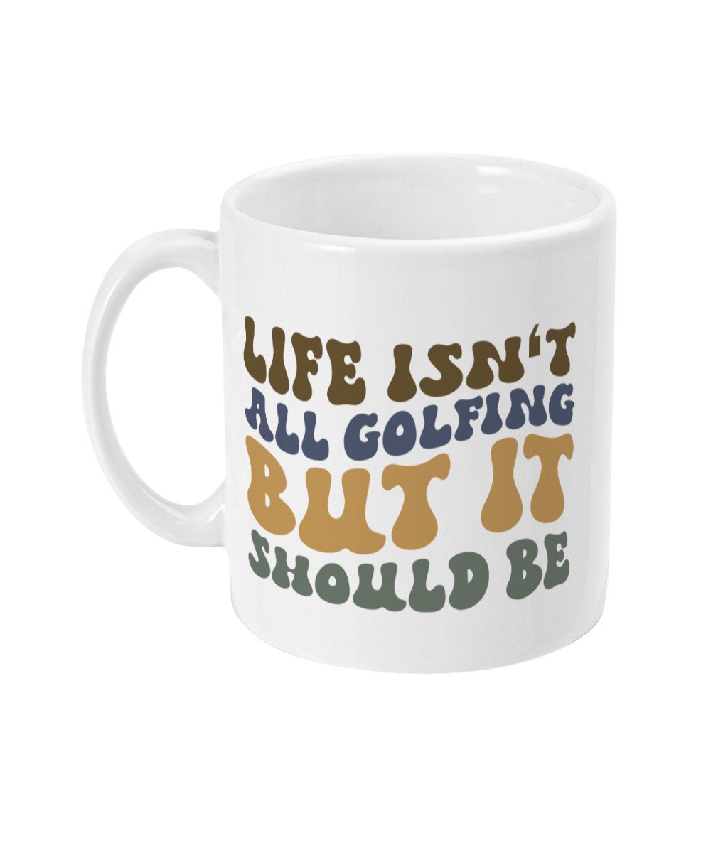 Indulge your golf obsession with our ‘Life Isn’t All Golfing But It Should Be’ mug. Crafted from high-quality ceramic, this mug exudes sophistication with its bold statement design and sturdy build. Whether you’re a dedicated golfer or simply admire the sport, this mug is a perfect gift for anyone who dreams of a golf-centric life.