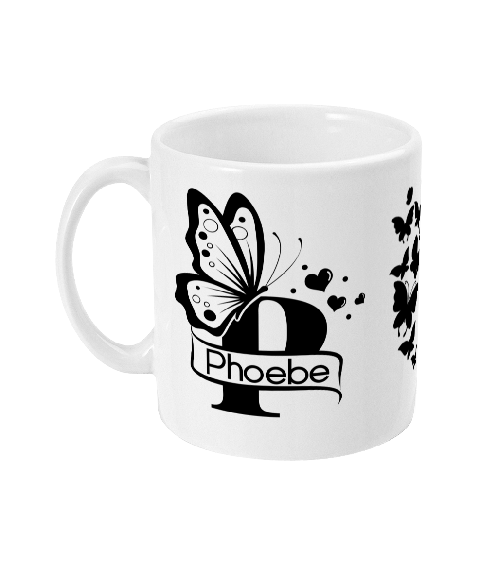 Immerse yourself in the enchanting beauty of nature with our elegant Butterfly Monogram Mug personalised with the initial ‘P’. Graceful butterflies flutter around the letter ‘P,’ creating a mesmerising design that symbolises sophistication and individuality. This monochromatic masterpiece, available in Black, Neon Pink, Regal Purple, or Sage, makes a perfect gift for those with names starting with ‘P’ or anyone captivated by nature’s allure.