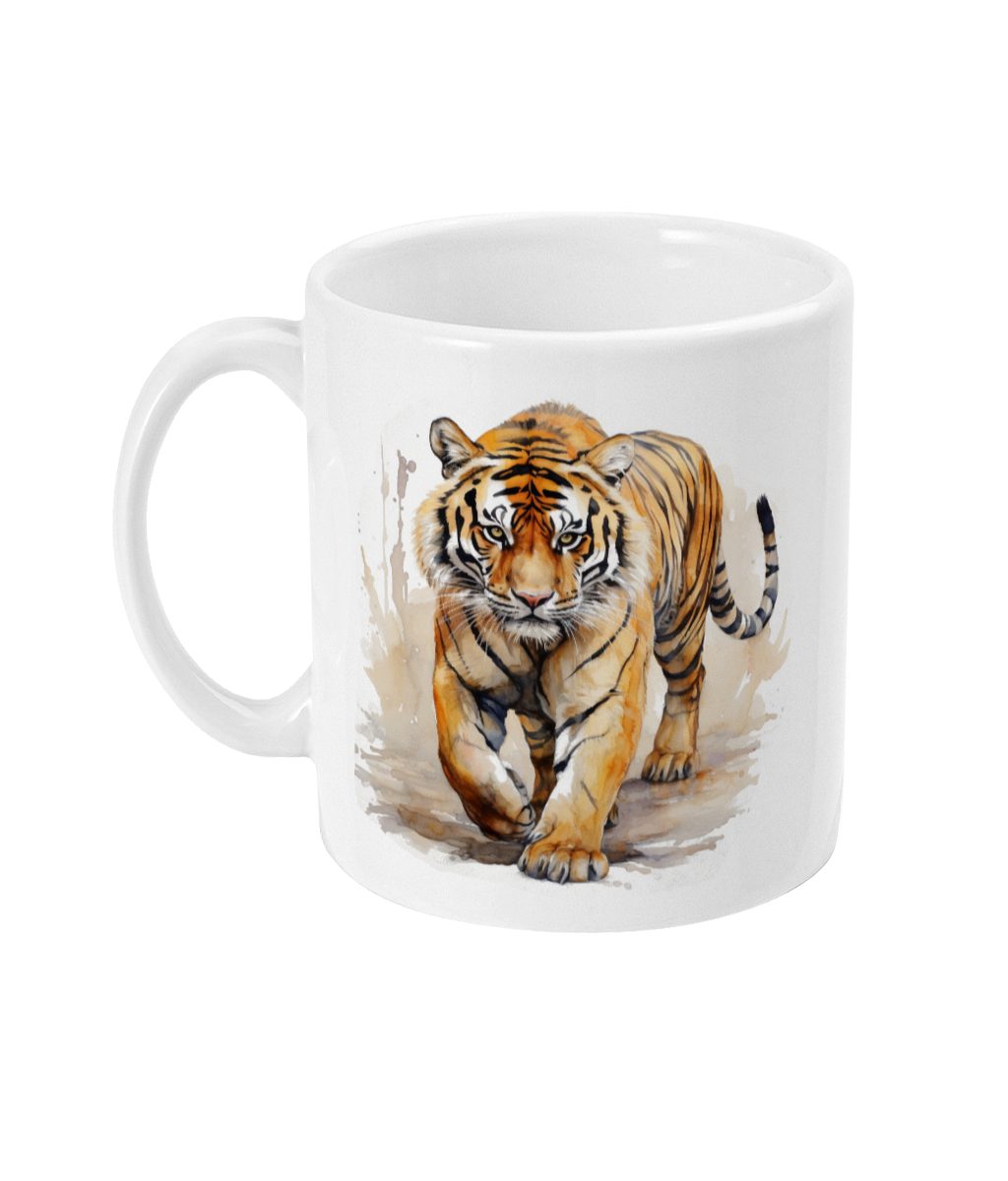 Unleash the wild with our Tiger Stride Watercolour Mug! Let the majestic tiger bring fierce elegance to your mornings.