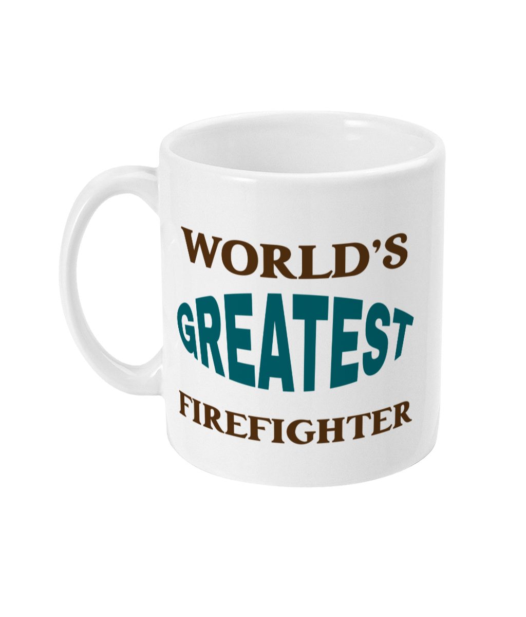 Raise a toast to the fearless firefighters in your life with our ‘World’s Greatest Firefighter’ mug. Made of high-quality ceramic, this white mug features a bold and vibrant design with the words ‘WORLD’S GREATEST FIREFIGHTER’ in brown and teal. It’s not just a mug; it’s a heartfelt gesture of appreciation for those who risk it all to keep us safe. Microwave and dishwasher safe, it combines practicality with sentiment, making it a perfect daily companion for any firefighter.